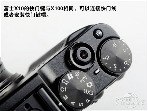富士X10的快门键与X100相同,采用传统机械相机的样式,支持连接快门线或者另外加装快门键帽。