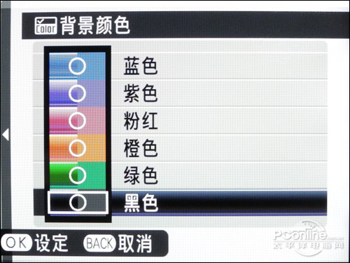 富士X10可以设置多个背景主题色,模式为黑色,还有另外的5种色调可选。