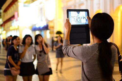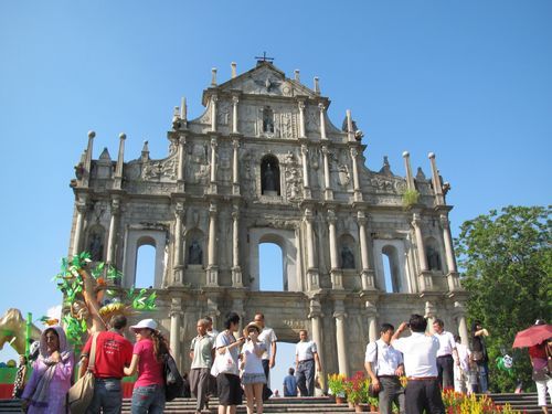 大三巴范围各地游人、大陆消费者云集,相当夸张,不过也是一个拍摄各种题材的好地方。