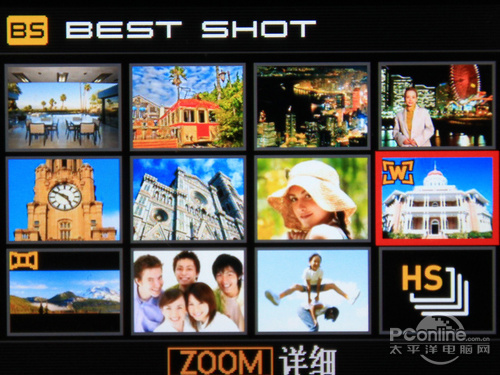 在机身顶部,常用的BS(best shot)按键就在上方,方便进行选择不同场景模式。机顶位置则是双声道的麦克风,拍摄视频的音效更有保证。ZR15对于视频拍摄也有一定的优化,机身背后还有一个直接拍摄视频的按键,方便拍摄全高清视频。