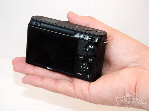 从产品的外观上来看,尼康 1 J1套机(配10-30mm镜头)采用了轻薄坚固的金属材质机身,看上去十分时尚,有品位,外壳经过了磨砂处理,手感十分细腻。背部搭载了一块3英寸、46万像素的液晶显示器,具有不错的显示效果。机身三围仅为106×61×29.8mm,如此小巧的体积即便是搭配上了10-30mm的套头也十分很和谐,不会显得头重脚轻。