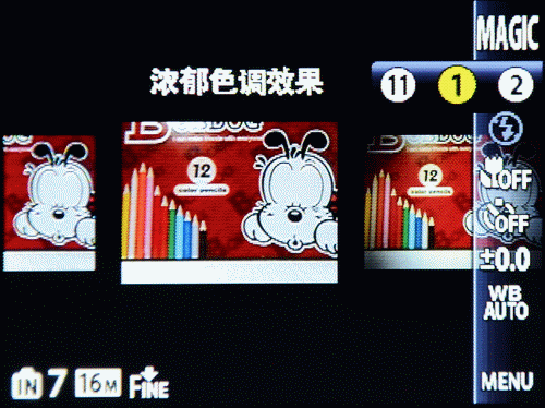 奥林巴斯SP620还继承了奥巴特色之一的艺术滤镜功能,并且有11种不同效果可供用户拍摄时选择,在后面的实拍样片中我们将为大家展示。