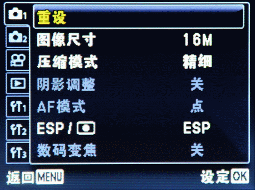 机内详细设置菜单