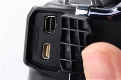 奥林巴斯SP620机顶内闪和机身侧面的数据接口(上:USB 下:HDMI)