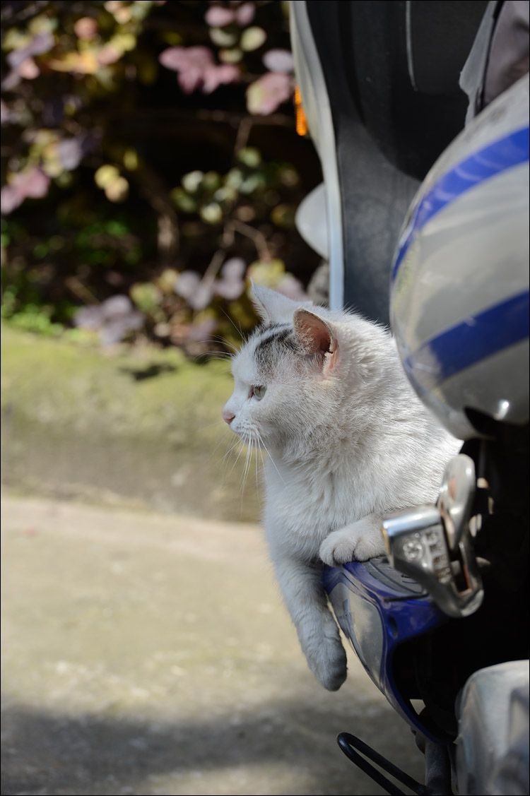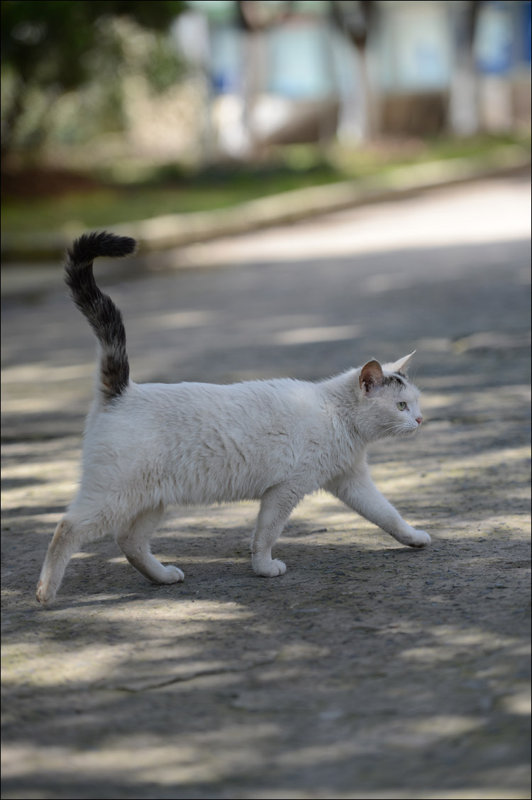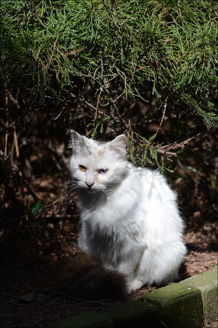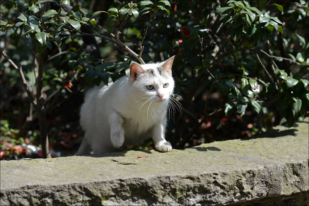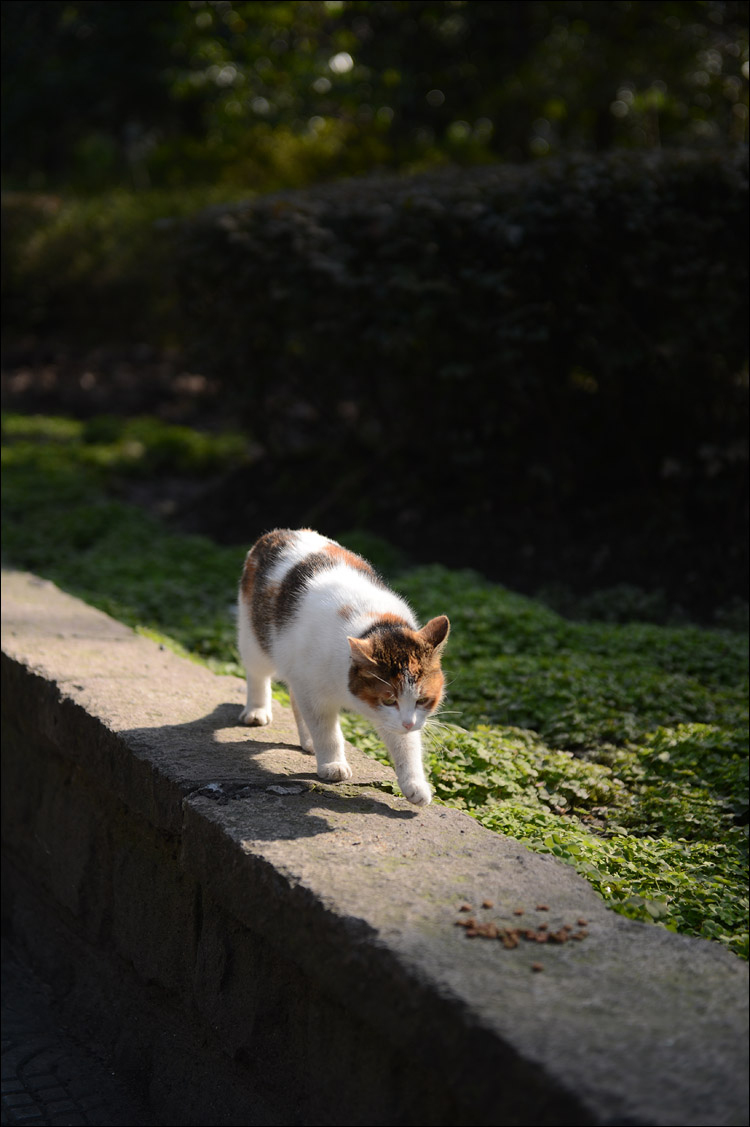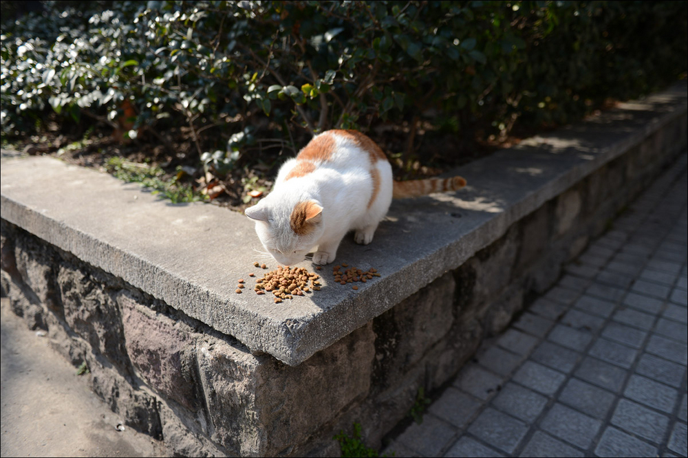 华政里猫猫与我上次去见时已经大不同了,唯有题图上的这只带有黑色尾巴的小白猫依稀是当年的“咪小姐”。其他猫咪好似都想不起来是否曾经拍 到过,特别怀念当时在学校教育超市门口遇见的那只断尾猫,不知道今安在否。虽然华政的师生们总体来说都挺爱惜猫咪的,而且还有很多好心人和我一样带着大包 猫粮来喂食,但毕竟不比家养环境优越。这些出没于校园与街头的猫猫实际都是普通家猫后代,无奈却栖身于户外,境遇凄苦。