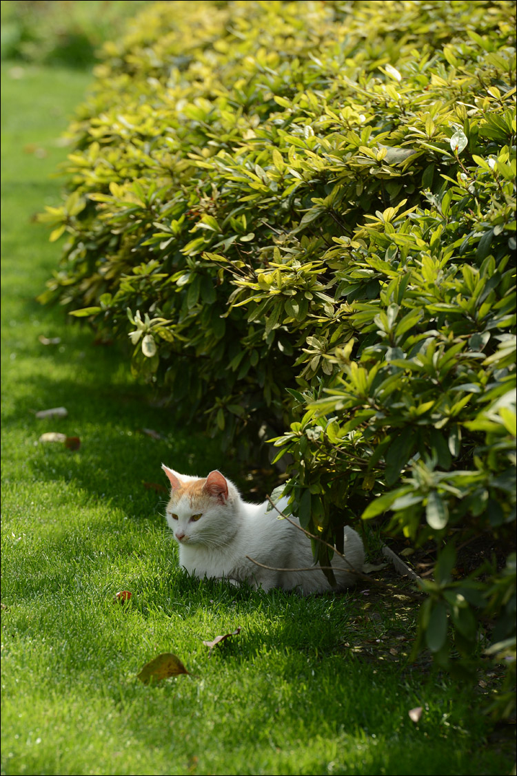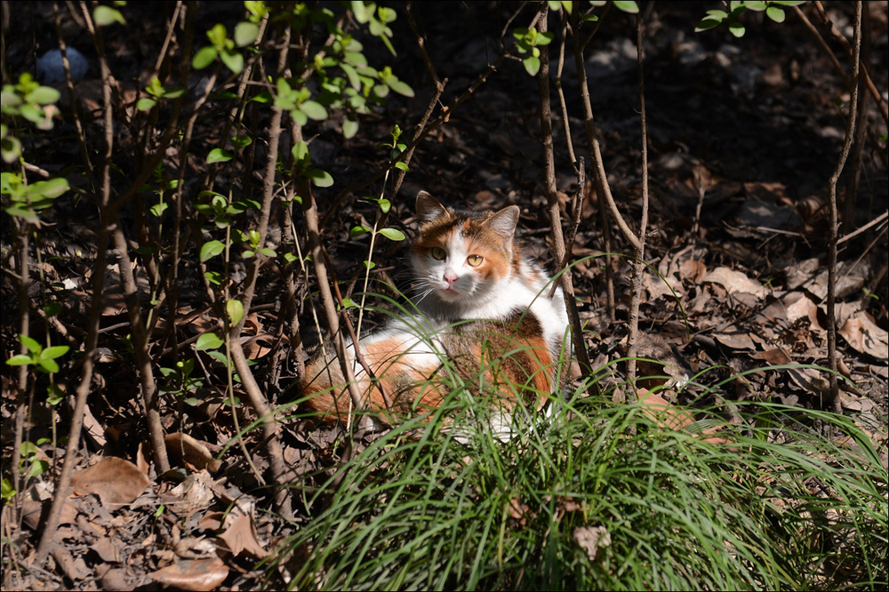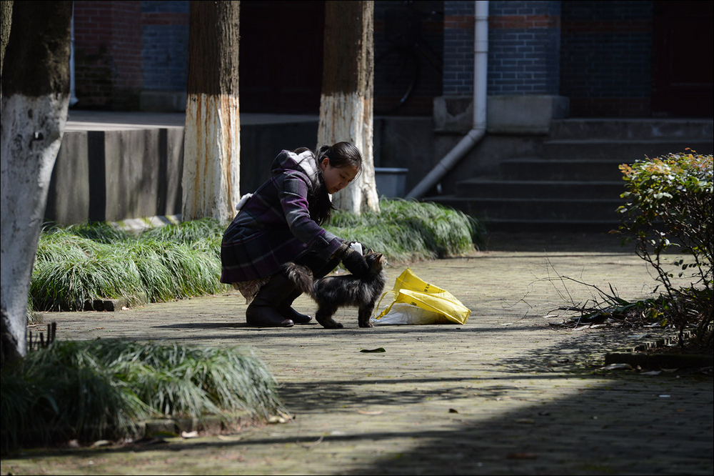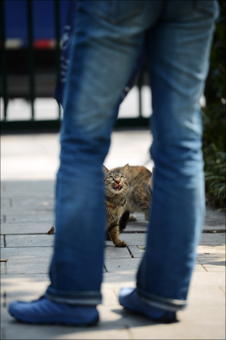 我承认其实自己是想利用尼康D4的高速性能,拍摄到一些类似@丁三郎_ 镜头下活泼好动的猫儿们,所以下午才又抽空去了华东政法大学一次。但是,可能是因为天气原因猫猫们都不太肯活动,更可能是因为我没有他那种花费近十个小时 只为了等候猫猫在镜头前跃起一瞬的耐心,所以实在没有能抓到多少动感的猫照。