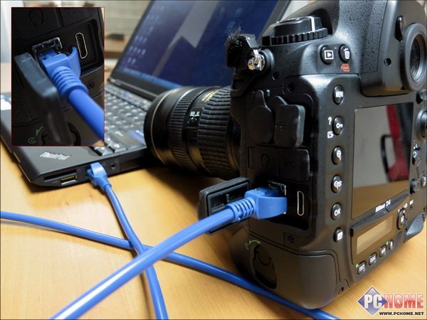 当 然,对于我们普通用户而言,这样的超强配置似乎并没有多少实用的价值。不过我还是很想要简单的体验一下机身上的网线接口,看看这个装置是如何帮助用户快速 的传递照片的。按照尼康的官方说明(包装盒内有独立的一本网络应用指南),我们先将一根网线把尼康D4与笔记本相互连接起来。在尼康D4机身的网线接口 旁,也有我们熟悉的黄绿两色LED指示灯表明数据连接、传输状态。