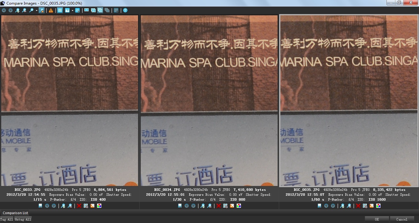 这一组其实没有多少参与对比的必要,总之ISO 800比不少相机的最低感光度画质也差不了多少;