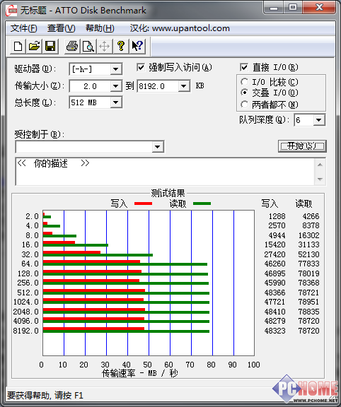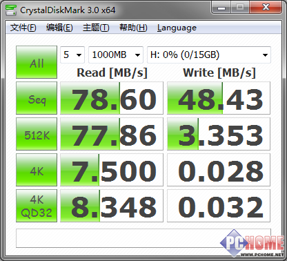 索尼的XQD卡在包装上写着的理论传输速度达到了125mb/S,但这当然只是理论值。我简单的用两款常见的磁盘测速软件来检验下这张存储卡搭配原配读卡器在PC上的读写速度。从两款软件的表现来看,这张卡基本能够达到读78-79mb/S、写达到48mb/S的水准,速度还是相当高的。