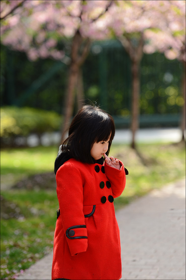 今天最上镜的模特,一位身着红衣的小萝莉。她本来是开开心心的跑在妈妈前面的,看到我们的镜头突然变得羞涩起来,咬着手指跑到妈妈身后去啦。真可爱!