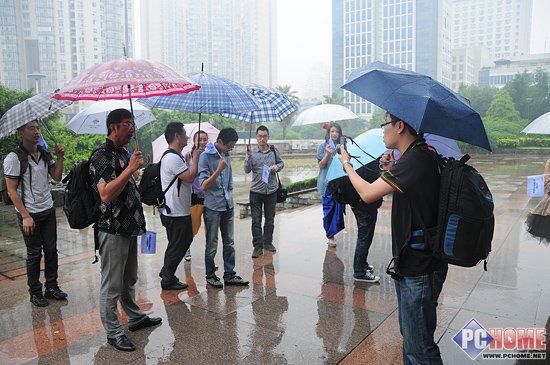 这是我们在温州九山公园东门拍摄的大合影。虽然天公不作美但丝毫没有浇灭温州网友们的激情。雨伞、PChome旗帜挥动着,笑容洋溢在每一个网友的脸上。