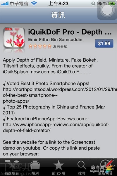 iQuikDof的操作方式非常简单,效果呈现形式也非常不错,相对于另一款需要付费的App“Biog Lens”也毫不逊色,喜欢制作景深虚化的摄影爱好者可以下载尝试。领带iQuikDof也包括需要付费的Pro版,该版本不仅消除了免费版本中的广告,更提供了出色的照片特效,如果用户有更多需求可以考虑付费升级为Pro版本。