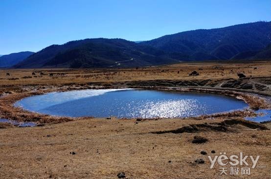 在214国道2088公里处,我们看到一个天然形成的圆湖,不经令人惊叹大自然的鬼斧神工,即使再精细的人工修饰,都不一定能做到如此不留痕迹。