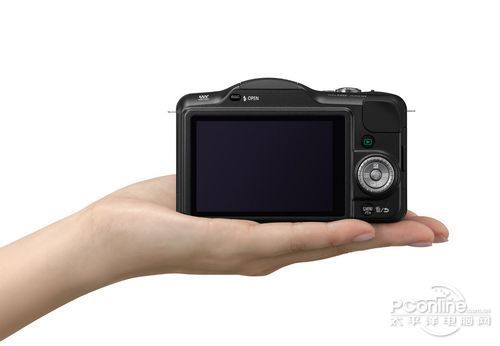 松下GF系列是M4/3单电相机阵营中广受欢迎的一个系列,作为该系类第三代产品GF3的体积非常小巧,整体机身体积还不够一个成年男性的手掌大小,将便携式的特性放大至最大。