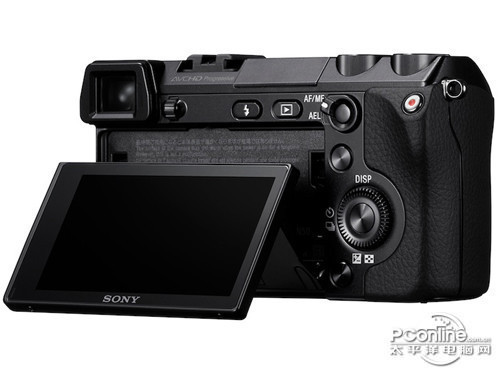 和同系列产品相比,NEX7新增了很多配置,热靴、内置闪光灯、电子取景器等等,但仍然保持了 NEX系列原有的设计风格。尽管机身有所增大,但是仍属于小巧的类别,与其他品牌的旗舰单电相机相比较,体积控制十分到位,机身高度比镜头卡口直径略大一些,相比NEX-5系列机身高度比卡口直径还要小的设计,显得更协调。