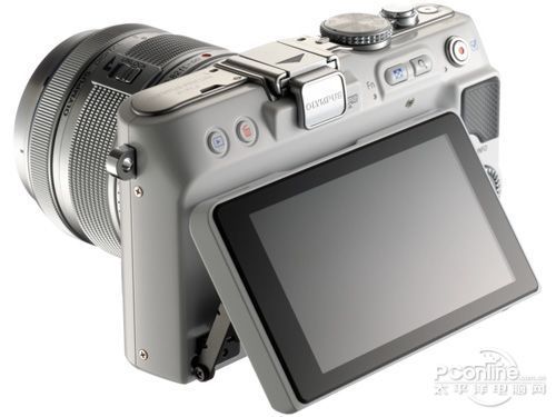 在产品配置上,GF3搭载了具备高速AF检测的1210万有效像素LIVE MOS传感器,3英寸电阻式46万像素触控显示屏,操控设定上更接近于消费相机,取消了热靴接口,相同位置上配置了弹出式闪光灯,以触摸屏为主打,推崇使用智能功能,在使用习惯上更接近于消费相机。