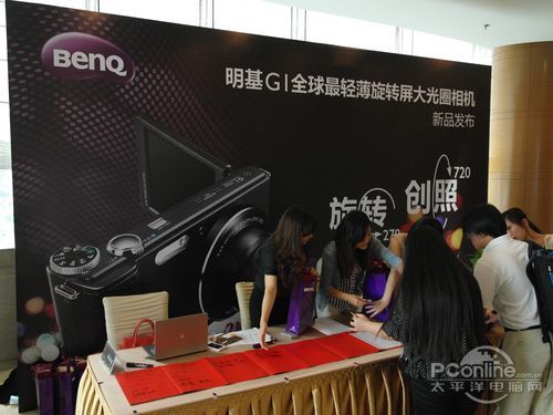 【PConline资讯】2012年6月19日,明基G1全球最轻薄旋转屏大光圈相机,新品发布会于北京福朋喜来登酒店盛大召开。本次新品发布会除了展示了明基最新的旗舰机型G1,并总结了明基数码相机在过去十年的发展历程,让媒体朋友对我们华人数码品牌明基数码相机有了更加深刻的了解。