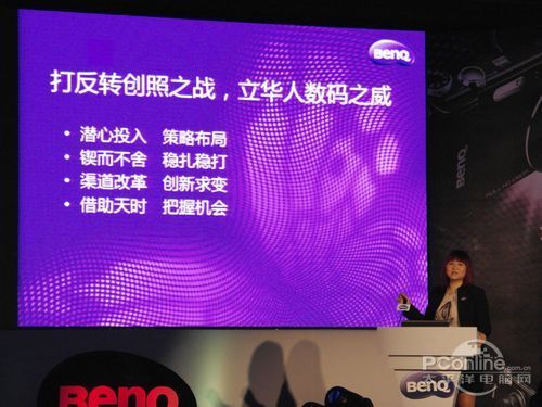 在接下来的中国区营销战略报告中,明基中国数码产品事业部总监陈奕女士为在场的记者们带来更详实的数据和更生动的内容。据陈奕表示,明基数码在中国本土成功把握了几次重大的市场转折点。
