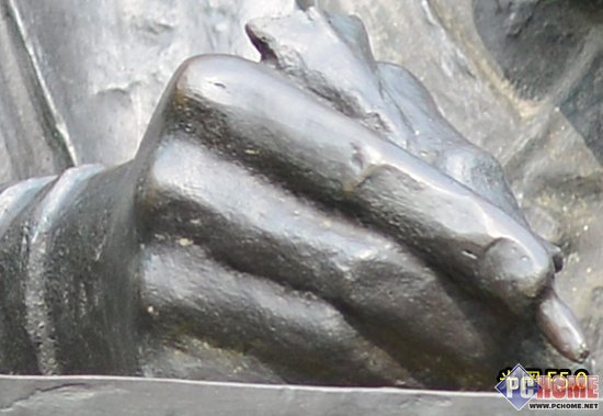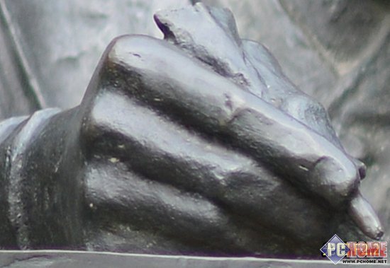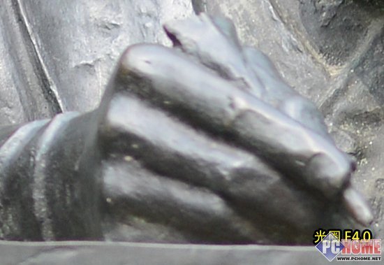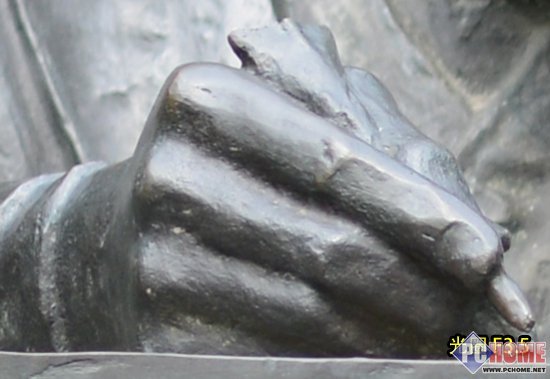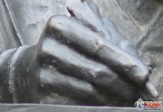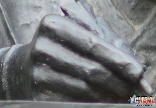 自然光状态下随机拍摄一个金属铜像、将图像中的铜像手部区域200%放大进行紫边测试