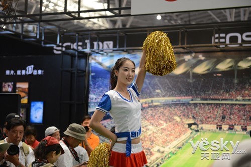 佳能的展台运动气息浓重,美女也是穿着运动装供大家拍摄。