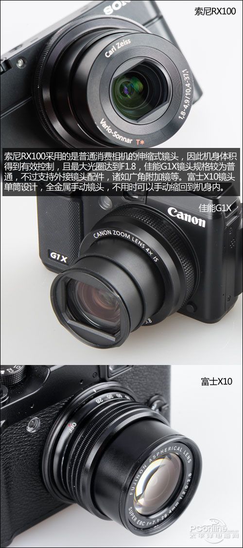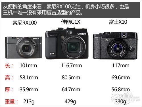 索尼RX100(资料 报价 图片 论坛)/佳能G1 X(资料 报价 图片 论坛)/富士X10(资料 图片 论坛)参数对比