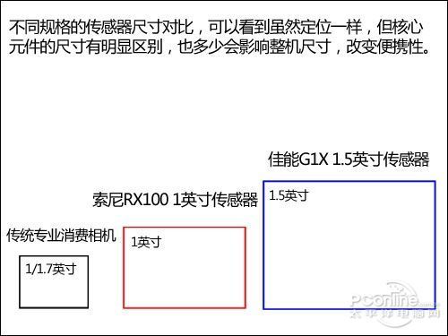 今年推出了不少专业消费相机产品,使用的传感器都是单电相机级别的,好处很明显,就是提高了原本不算太出众的画质表现,但是有一定机身尺寸失控的风险,从目前推出的主流产品来看,更大的传感器对专业便携相机的机身尺寸控制难度更高。采用1英寸传感器的索尼RX100要比采用1.5英寸的佳能G1X机身小巧很多,除了整体设计风格影响外,传感器尺寸也是一个很重要的原因。