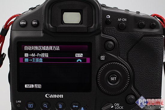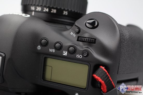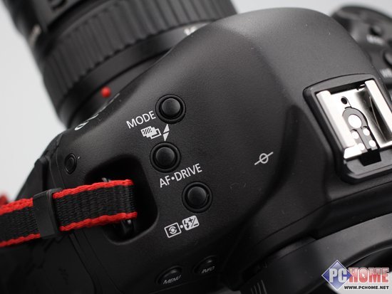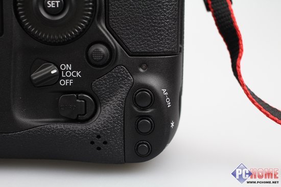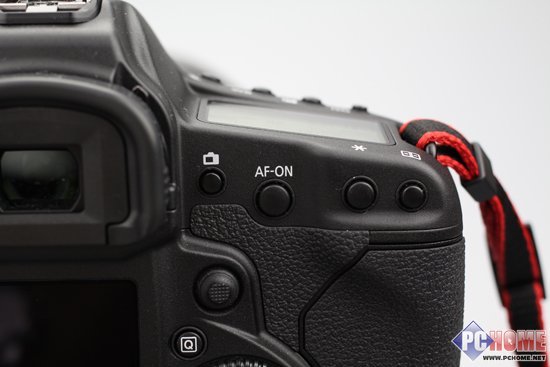 位于机身右肩处(从左边开始)第一个是实时取景拍摄及短片拍摄按钮,这一个按钮是上一代产品1D4没有的,实现了方便快捷的视频录制和取景框取景,AF-ON是自动对焦启动按钮,最边上两个就是曝光锁定按键及自动对焦选择按钮(景深预览按钮)。这3个按键没有任何变化。