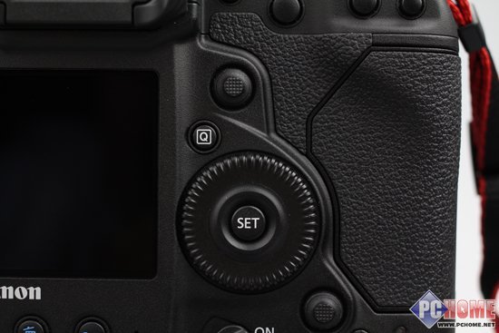 位于机身把手处中间这块区域是多功能控制按钮一共有2个,相比上一代产品1D4在拨杆造型上更加圆润了,也显得有些小,稍微有那么点小硬,但是在竖拍时十分方便选择新的对焦点,让操控更为自由,佳能在本次新产品1DX还增加了一个Q按键,名为速控按钮,一些光圈或ISO对焦测光等也可以在这个快捷Q按键里配合SET和速控转盘实现快速调节完成,让中间这个在拍摄时起关键重要的部位真正的灵活飞跃起来。