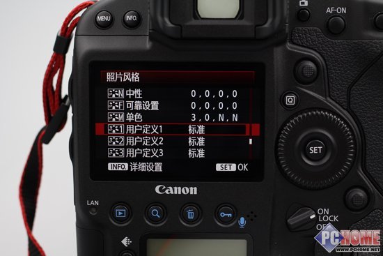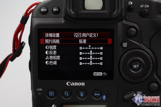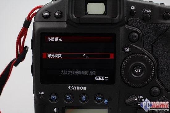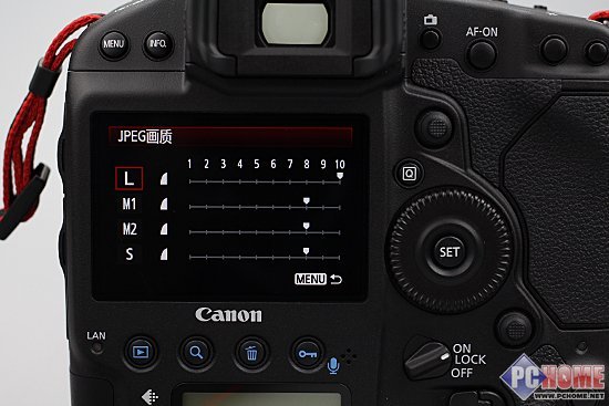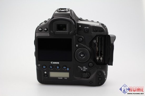 1DX机器的最边上新增加了LAN的指示灯,机身的下部按钮相比1D4在外观上也发生了大改变,把之前3个小按钮移到小屏幕上方并加入了放大键,以及存储格式切换选择键,直接取消了FUNC键,最下方的液晶屏虽然变小了,但是在操控中更人性化了。