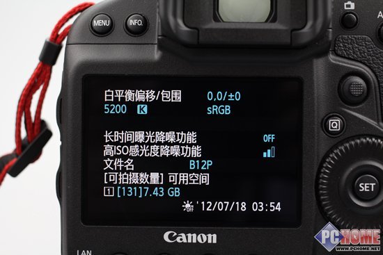 INFO按一下时会显示机内白平衡状态及长曝光降噪功能和ISO降噪功能、剩余拍摄数量、年月日期等。