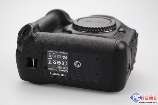 从机身底部来看,尼康D4的机身底部相对与佳能1DX要矮一点,有图看见尼康D4手柄处与机身底部的手柄已经融为一体,难道它想证明胖子也有线条感?我认为这一点的设计尼康做的还是比较专业的,在竖拍时我能切身感受到它的手持稳定性,但是很遗憾的是没有加入腕带的接口,而佳能这款1DX的机身底部相对比较厚实在外型上较上一代产品没有改变,也许是这次佳能公司肯定想加入更大容量的电池才做出这样牺牲,等下我们就来看一下。