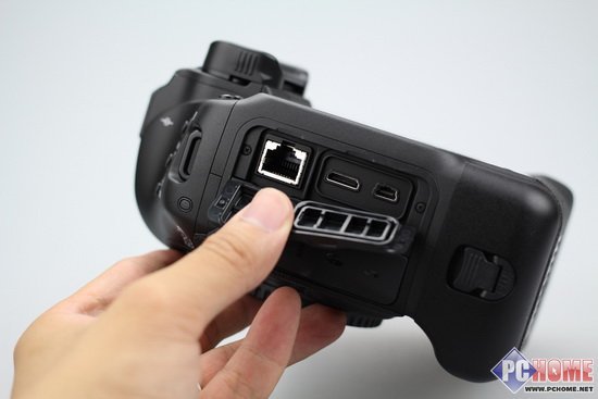 这个地方大家一看就应该明白了,没错这里就是网线接口了,具体型号为以太网RJ-45端子,具体如何连接电脑进行传输我会在之后的介绍里向大家演示,位于它的下面是HDMI MINI输出端子、音频视频数码端子。