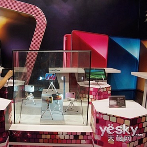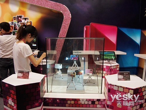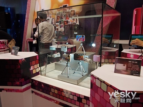 天极网展台上索尼J20相机展示柜已经布置好了