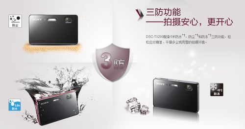 编辑点评:索尼的卡片相机一向受到女孩子的欢迎,原因在于有一个漂亮的外观,即便是三防相机TX200也是如此,具备三防能力和触摸操作,这是这款超轻薄相机的卖点。整块玻璃面板显得时尚感很强,适合时尚年轻人。2700元的价格有些昂贵,不过想要一款漂亮的照相机陪伴你水下使用,那么索尼TX200是个很不错的选择。