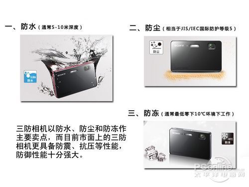 【PConline 海选导购】夏季是出游的好季节,也是台风的高发季节。在户外活动中使用一般的数码相机很难抵御雨水和风沙,容易对相机造成伤害。目前市面上比较流行的三防相机则能为您免除这些烦恼。本期导购,小编为各位网友推荐五部市面上主流的三防相机,让你无论在任何恶劣环境中拍照都无后顾之忧。