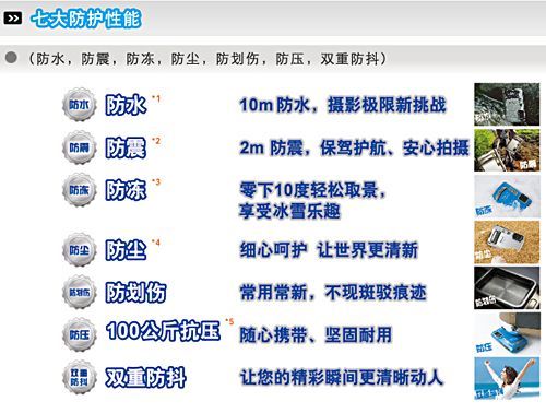 编辑总结:本次推荐的几款机型都具有十分出色的防水防摔功能,对于一般的家庭使用完全可以应付一般数码相机所不能使用的特殊场景,无论你是潜水、极地运动都可以让它们成为你的最佳拍摄设备。夏季雷雨频发,下雨天还是少点出门吧。