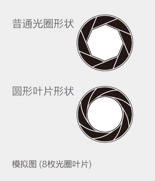 该镜头的光圈为9片,采用了圆形光圈叶片,光圈形状从全开到收缩2档区间都能呈现出比较正的圆形,可获得较好的虚化效果。