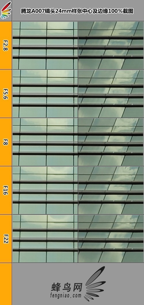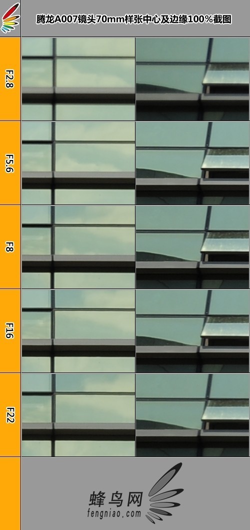我们分别截取24端及70端中心和边缘的100%截图以观察腾龙A007在实际使用中的分辨率表现。