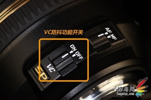镜头的一侧有两个开关,一个为对焦模式调节,另一个便是VC防抖的开关,防抖效果如何我们会在后面的测试中展现。