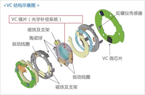 VC防抖是A007的主要特性之一,该头号称是全球首款搭载防抖功能的24-70mm镜头。下图是腾龙SP 24-70mm f/2.8 Di VC USD的防抖结构示意。