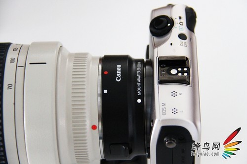 由于EOS M采用了新的卡口,如果要接EF镜头,需要使用新开发的EF-EOS M转接环与EF进行镜头进行转接。