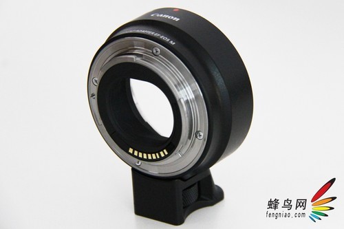考虑转接的EF镜头自重大的问题,为了保护EOS M机身及EF镜头卡口的安全,转接环下设计了一个三脚架固定支架,整个镜头的吃力点都能很好的附着在转接环与镜身上。
