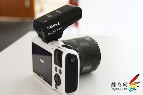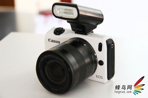 现场,笔者还试用了与EOS M一同发布的SPEEDLITE 90EX闪光灯。闪光灯本身外观设计带有一定的向上角度,看上去很时尚、很动感。闪光灯的大小也比较适合EOS M机身的整体设计风格。虽然产品很小,但看上去显得很专业。