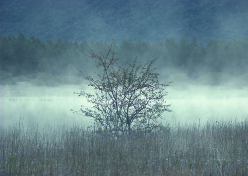 雾天气候是有季节性的,那么摄影者在无雾的天气就无法创作这一题材的内容吗?不是的。在无雾的天气,摄影者可以用高坚雾化镜(150、151)人为模拟雾景效果,在使用时调整镜座中的雾化镜位置可改变前景和背景的清晰度,背景距离愈远,雾的效果愈自然。