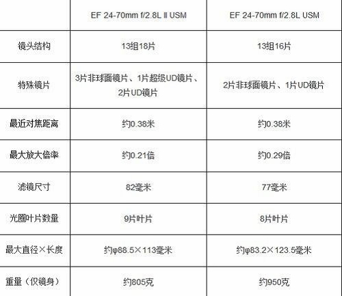 通过上图这张表格大家可以大致的看到新老两代“24-70”镜头的产品的具体规格,新款“24-70”相对老款镜头比较明显的几个优点为: