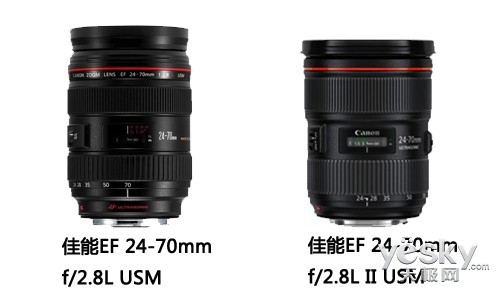 左为佳能EF 24-70mm f/2.8L II USM,右为佳能EF 24-70mm f/2.8L USM
