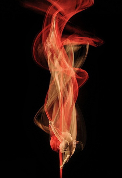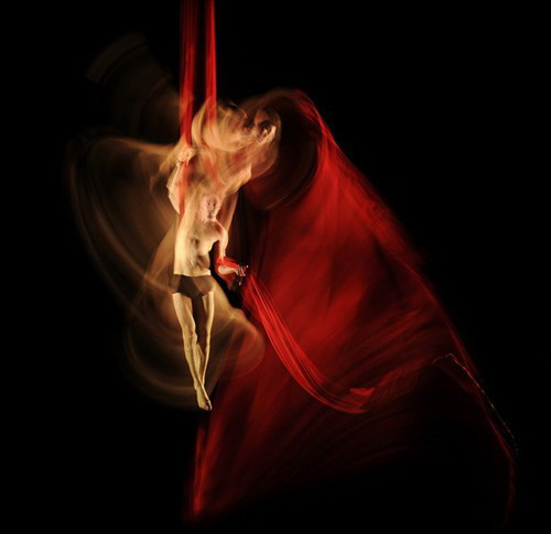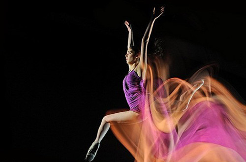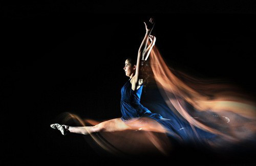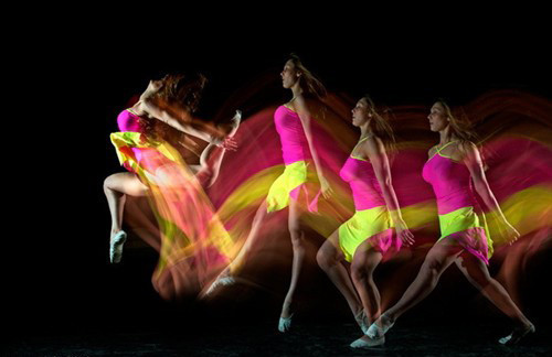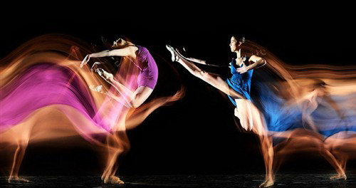 再加上长时曝光的拍摄技法,就可以拍出舞者移动的轨迹,等到你觉得移动的够了,打算要结束的时候,在后快门帘关上的那一刻,用闪光灯来瞬间凝结舞者的动作。