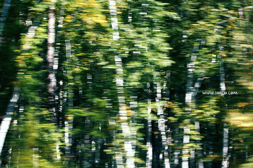 秋天的树,是最迷人的主角,在飞速前进的车上拍摄初秋的白桦林,车速八十公里每小时左右,使用快门优先,1/60秒快门,黄绿相间的叶子,白色的树干,都会被抽象成一幅抒情的写意色彩画。