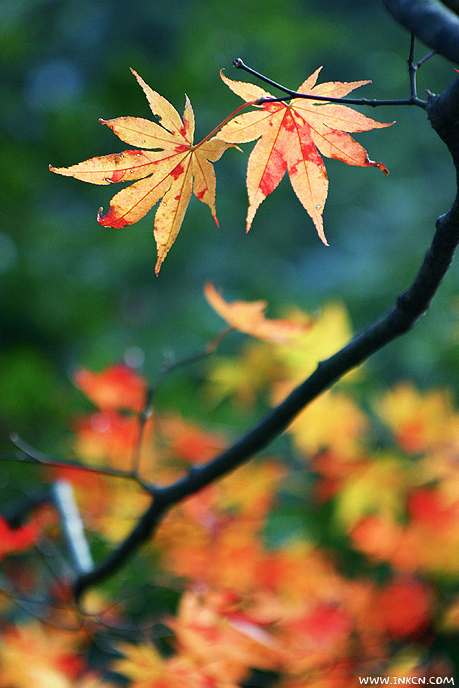 拍摄红叶时,不但要选择造型优美色彩丰富的叶子,也要留意背景的选择,最好能够干净单纯同时也要有浓烈的秋的气氛。