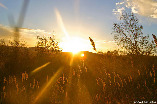 初秋里的阳光的明媚灿烂,也同样是让人沉醉不已的,在秋风乍起的旷野中,一轮壮丽的落日,伴着即将衰黄的秋草,仿佛一曲苍凉而又不伤感的塞上牧歌。